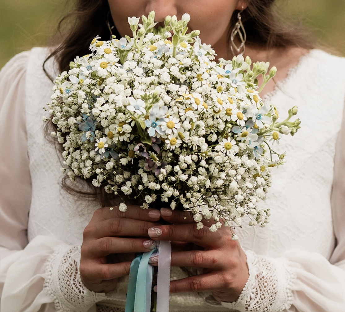 - 1 svadobná kytica (20 výrazných kvetov) + stuhy